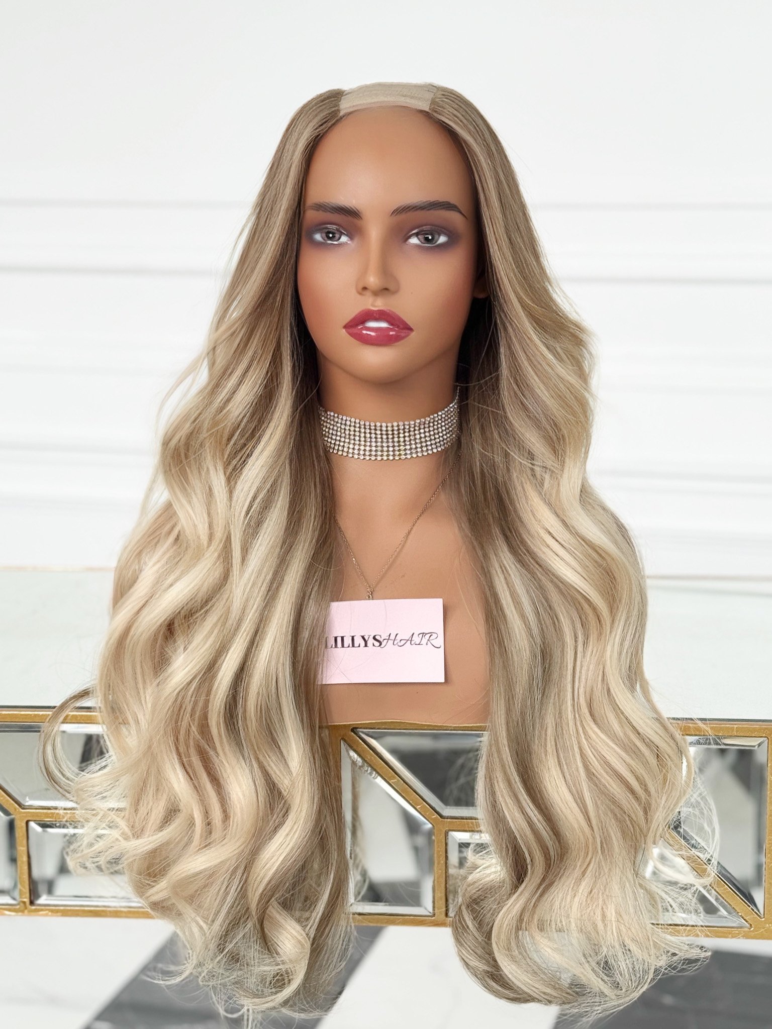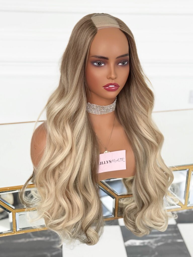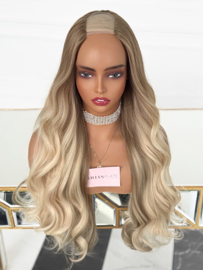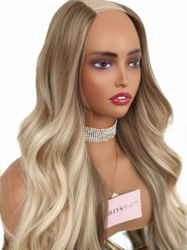 She comes with combs and an adjustable elastic band for the perfect fit. She can be put in a middle/side part by adjusting the position of the U part. She is designed to last for up to 3 years with proper care.