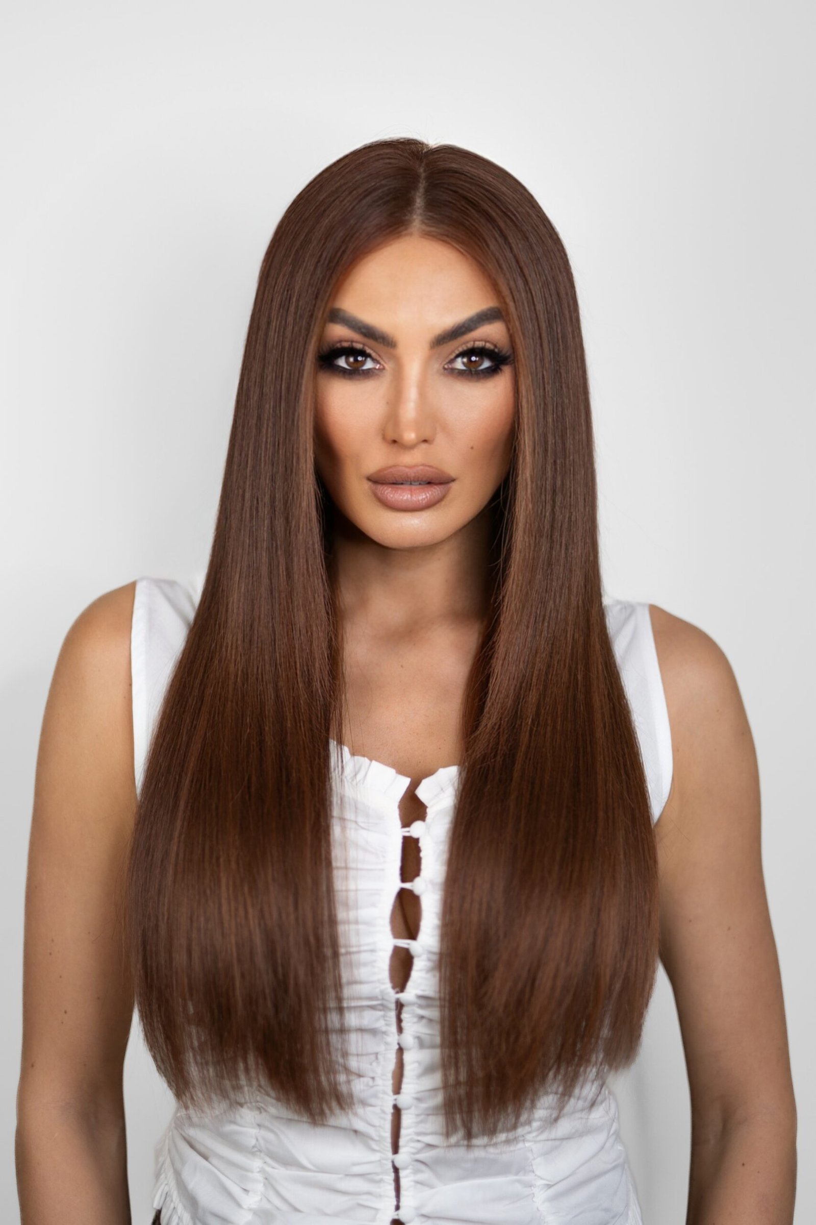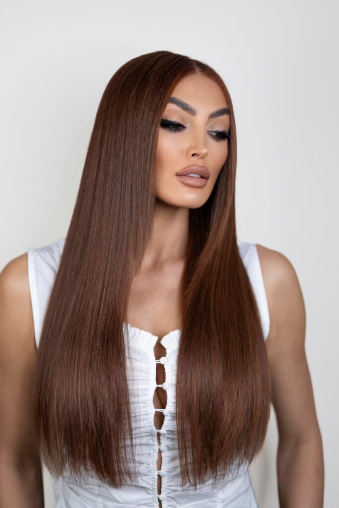 Make a statement with Cinnamon Spice, a beautifully multi-dimensional blend of soft brown and fiery red hues from the Lillyhair x Zaralena Collection. Crafted from 100% virgin Cambodian hair, this luxurious wig is available in straight or wavy textures, allowing you to create a look that’s both bold and elegant.