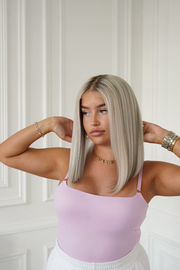 The Courtney Bob Unit is the bob version of our best-selling Courtney wig. She is made with Cuticle-aligned Virgin human hair to ensure that the hair stays smooth and strong for a long time. The Courtney bob has an asymmetric cut meaning that it’s slightly longer at the front and shorter at the back. We can cut it to be the same length at the back if required.