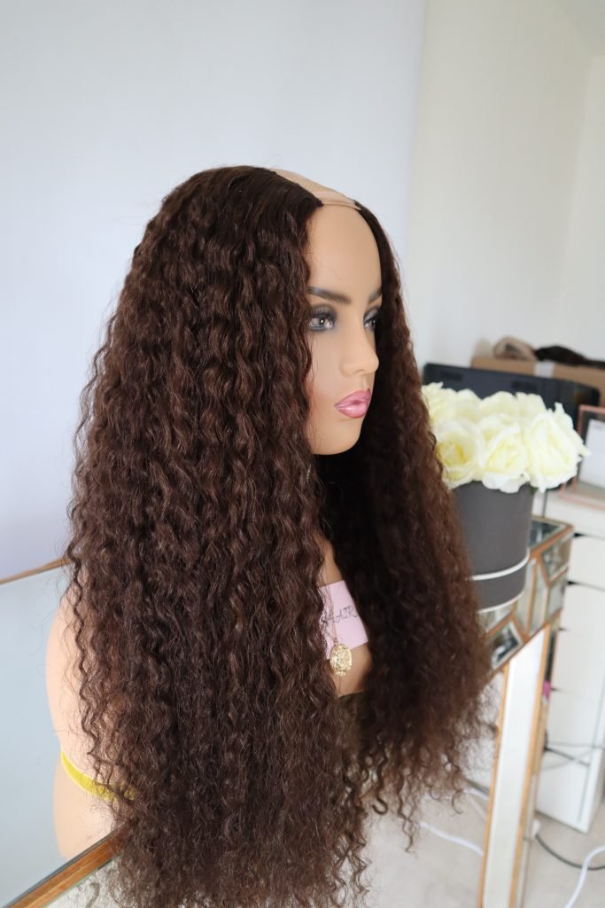 The cap size for the U part wig is standard one size with a 22″ circumference.