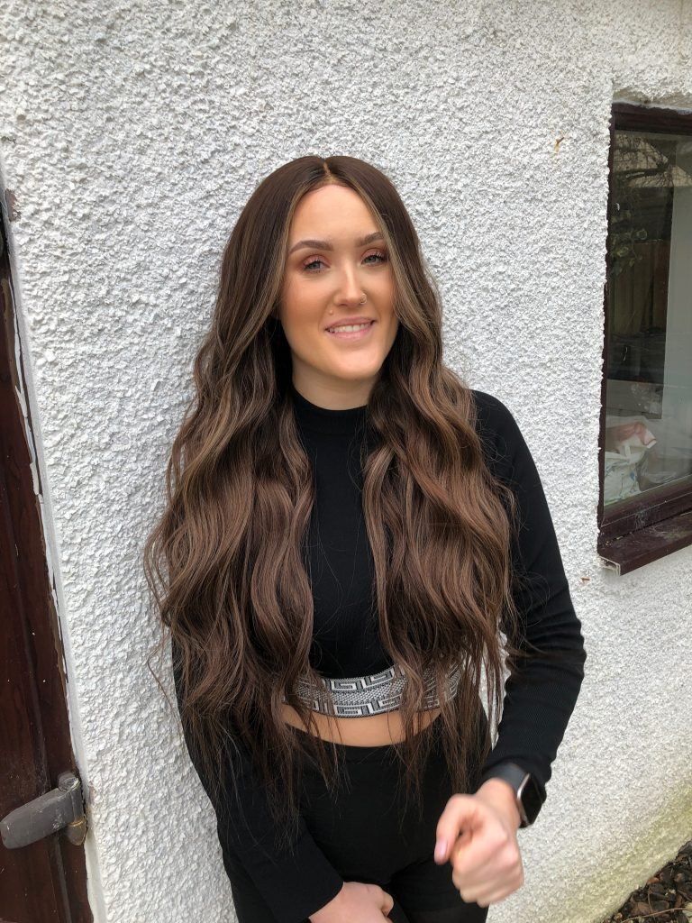 Colour: Light brown root melting into chocolate brown and light natural blonde. The hair used to make this wig is virgin hair, sorted by hand with the cuticles all going in the same direction.