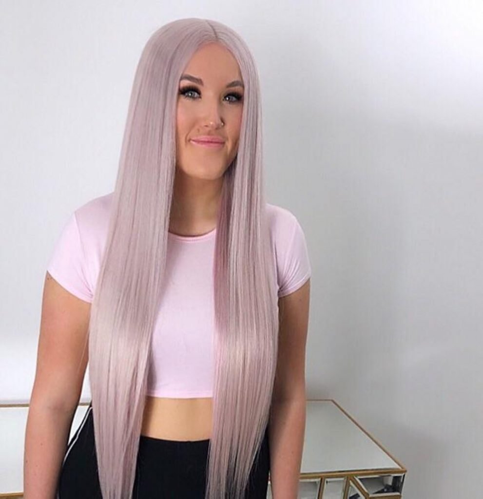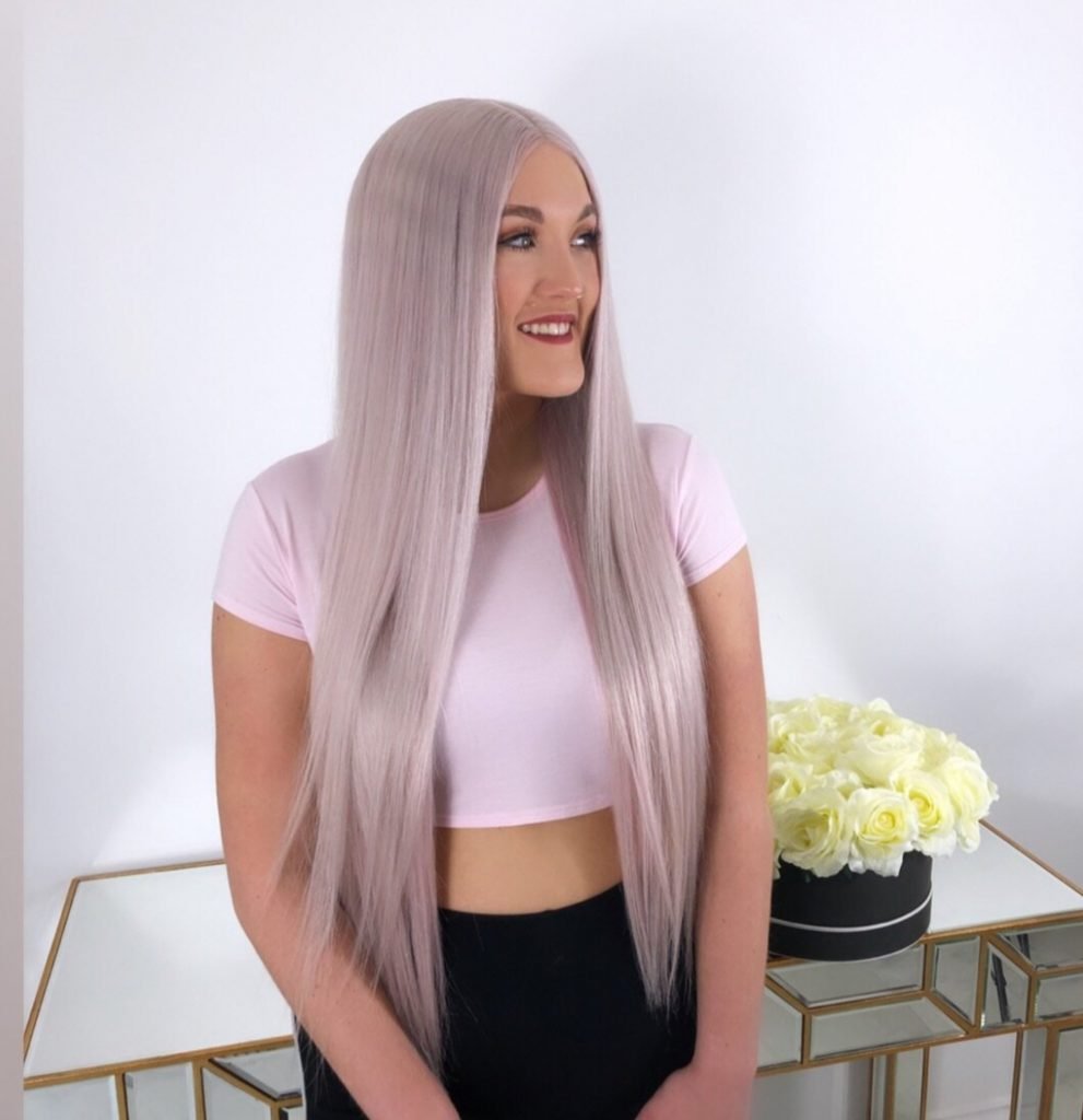 The Frost unit has an adjustable elastic band, clips, and combs for the perfect glue-less fit. She can be put in a middle/side part and can be put up in a ponytail. She is a glue-less full lace wig with transparent lace and bleached knots.