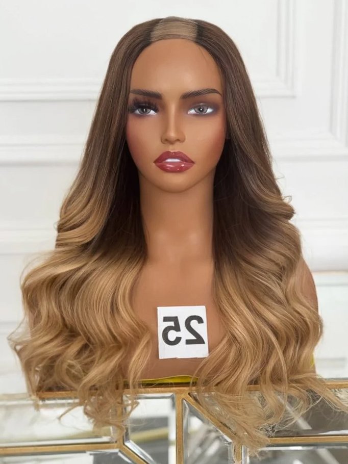 Colour: Ombre chocolate brown colour 4 root melting into golden blonde.