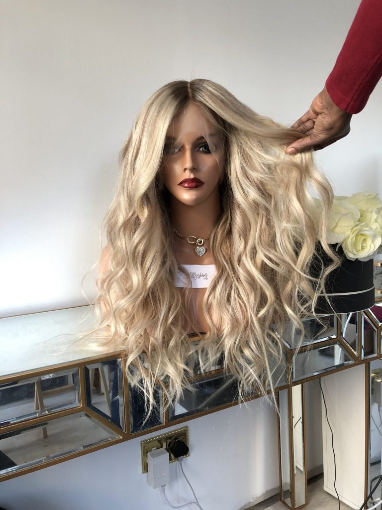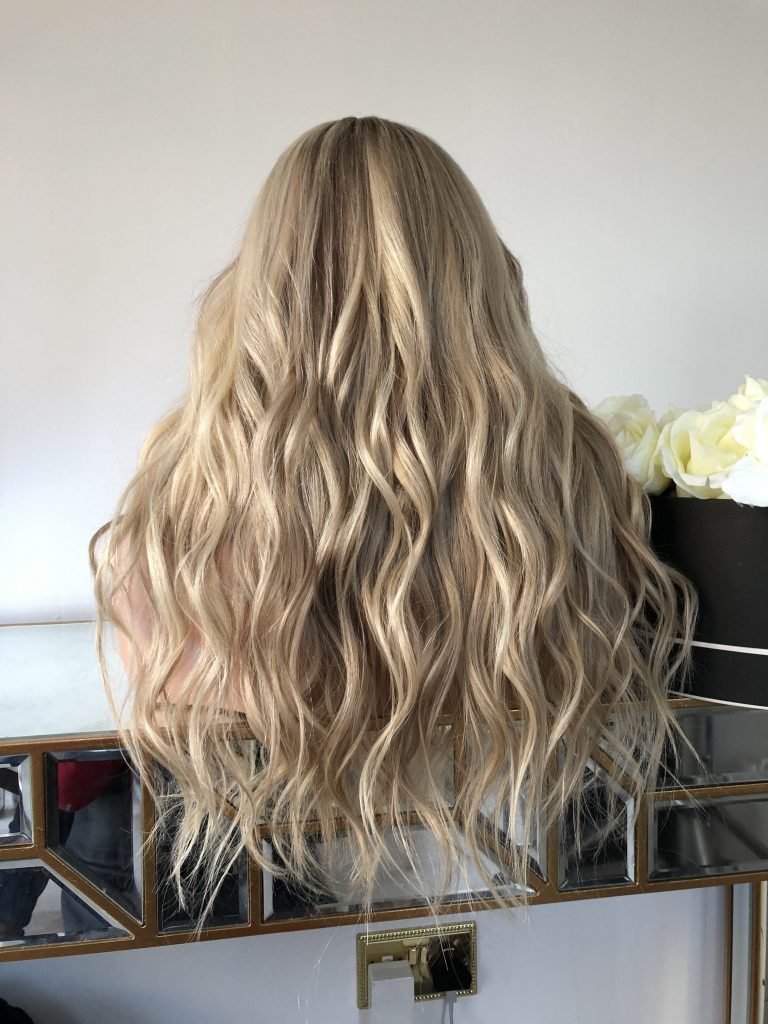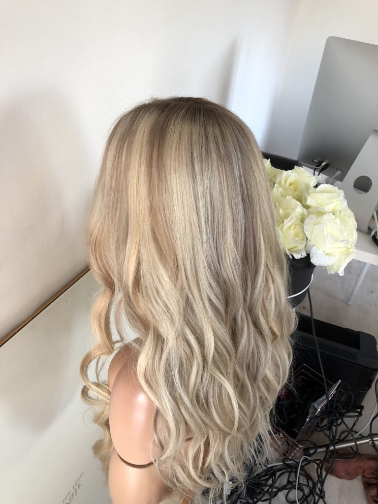 Colour: Light Blonde with dark ash blonde root and level 7-8 blonde lowlights.
