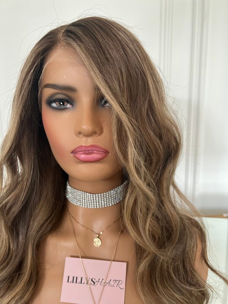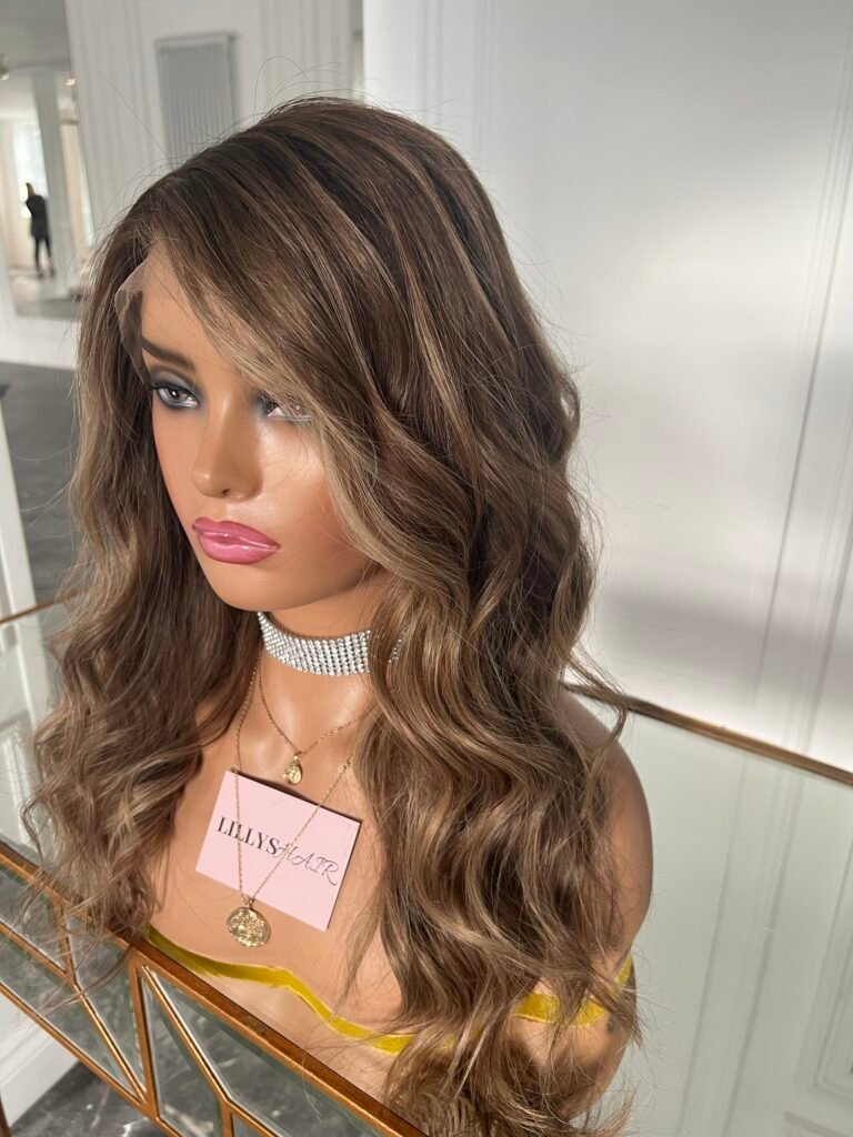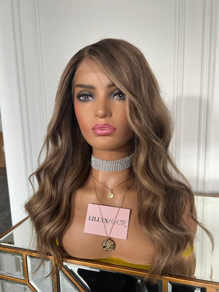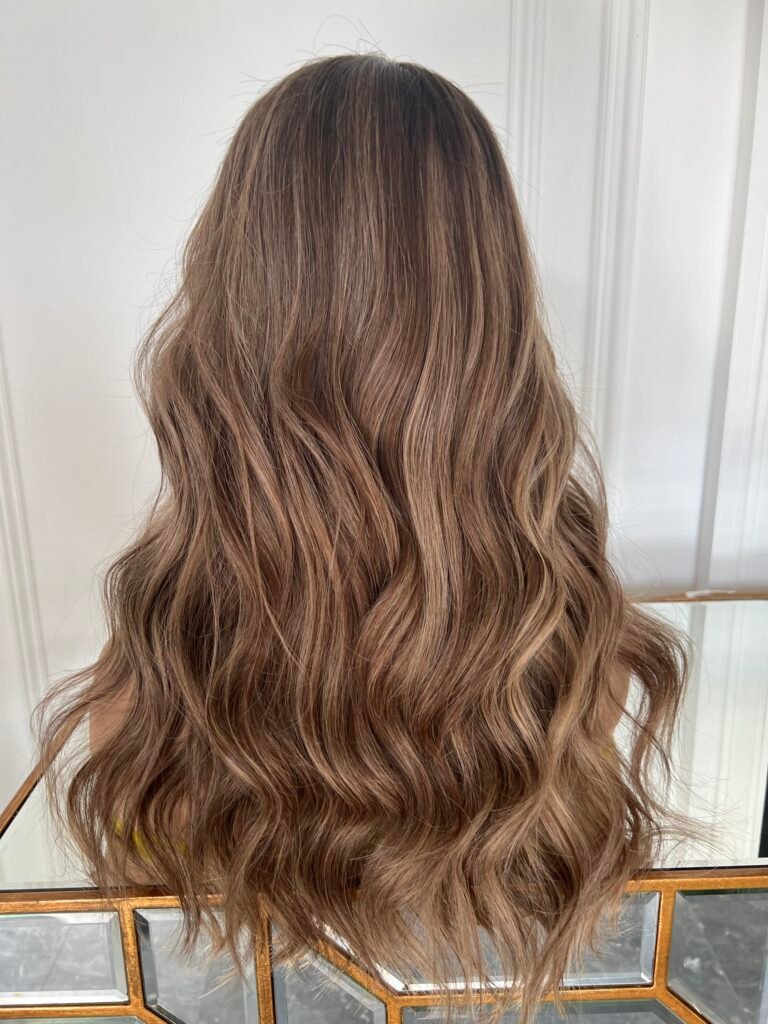 Colour: Light chocolate brown root melting into chocolate brown and caramel blonde.