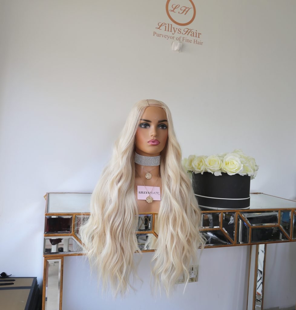 She comes with combs and an adjustable elastic band for the perfect fit. She can be put in a middle/side part by adjusting the position of the U part. She is designed to last for up to 3 years with proper care.