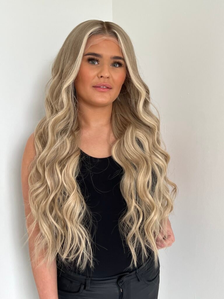 Our ‘Jasmine’ unit is super chic and will make you feel glamorous. She is made with the best quality real virgin human hair sourced directly from donors in Cambodia. Handpicked and hand-tied to perfection, She is perfect for everyday use. The Natural blonde tones make it super flattering for all skin tones. She has transparent lace, bleached knots, clips, combs, and an adjustable elastic band for the perfect glue-less fit. She can be put in a middle/side part and put up in a ponytail.