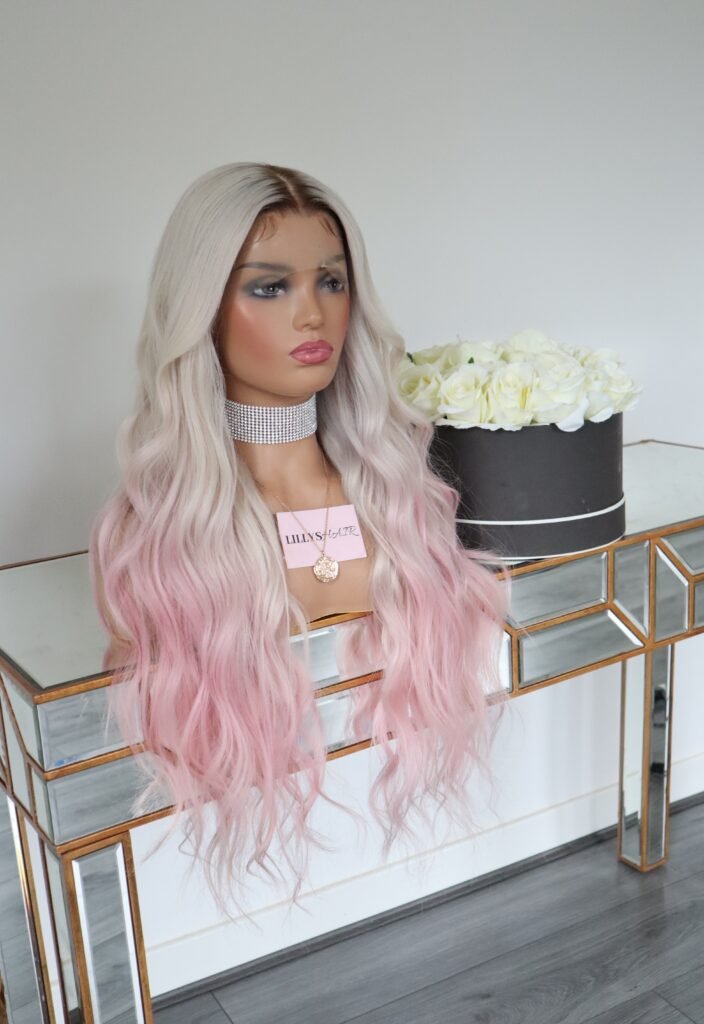 Colour: Platinum blonde fading into pastel pink with a medium level 6-7 blonde root.