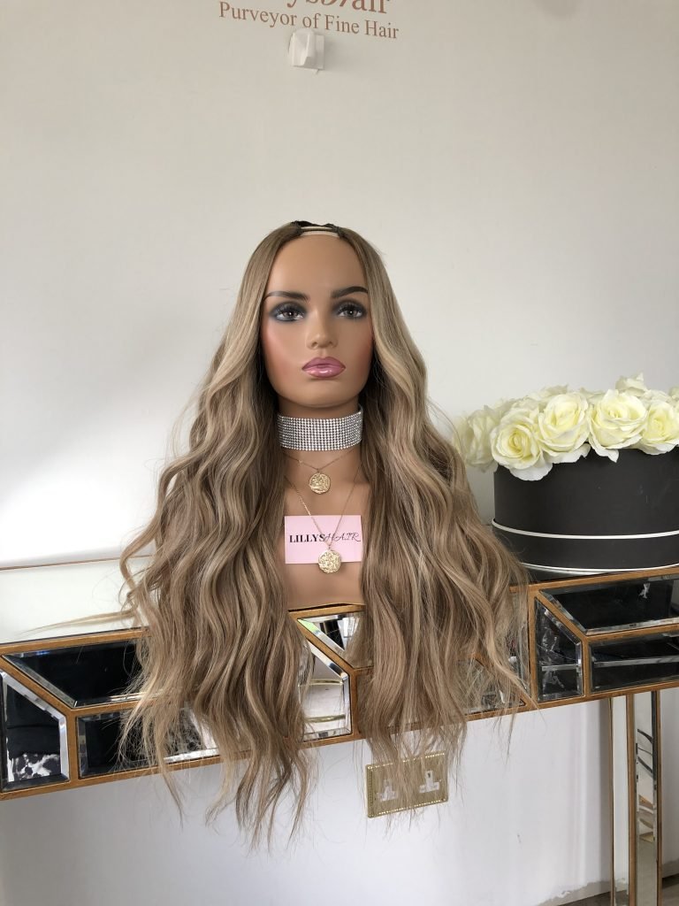 She comes with combs and an adjustable elastic band for the perfect fit. She can be put in a middle/side part by adjusting the position of the U part. She is designed to last for up to 3 years with proper care.