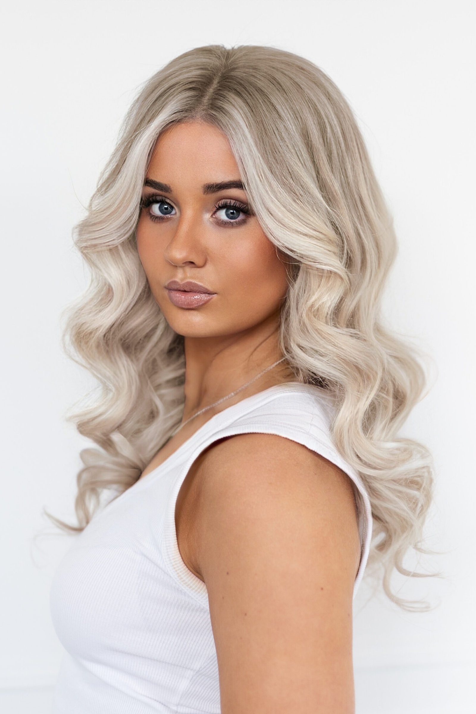 A luminous multi-tonal frosted blonde balayage designed for soft dimension and effortless elegance. Beautifully blended blonde tones create a bright yet natural finish, delivering depth, movement, and a refined icy glow.