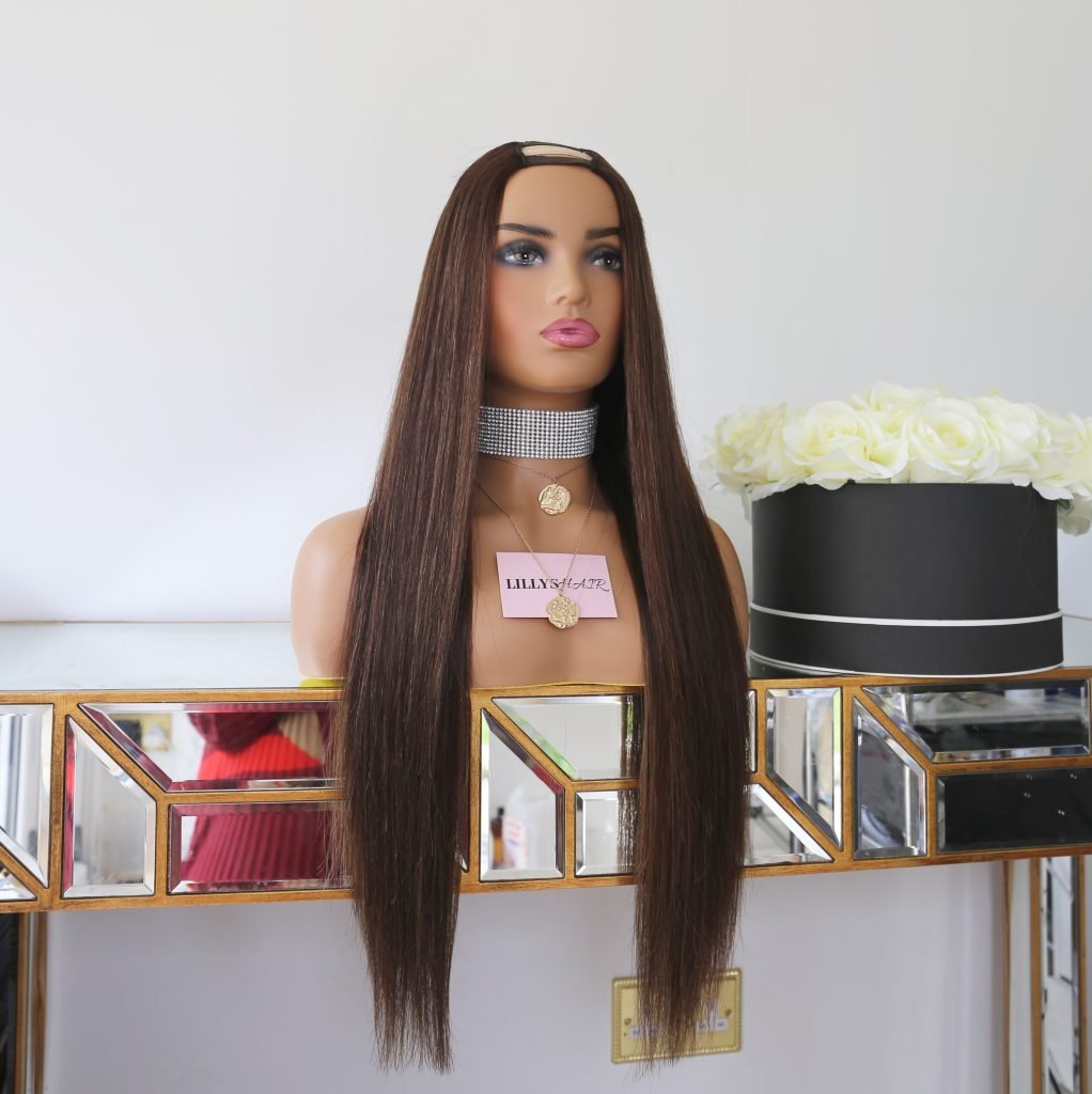 She comes with combs and an adjustable elastic band for the perfect fit. She can be put in a middle/side part by adjusting the position of the U part. She is designed to last for up to 3 years with proper care.
