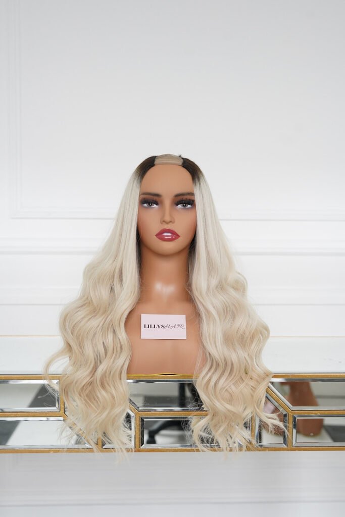 She comes with combs and an adjustable elastic band for the perfect fit. She can be put in a middle/side part by adjusting the position of the U part. She is designed to last for up to 3 years with proper care.
