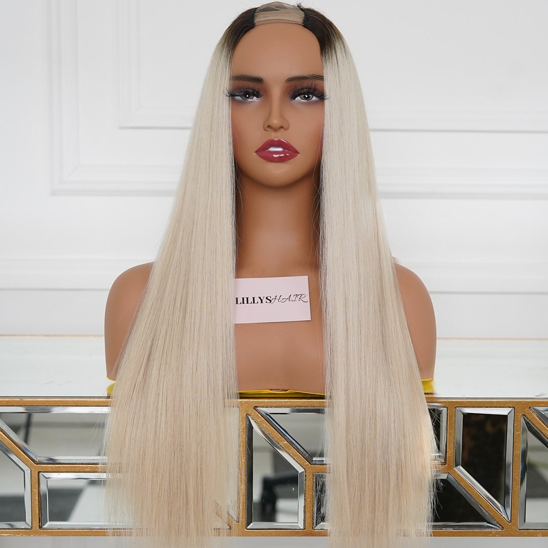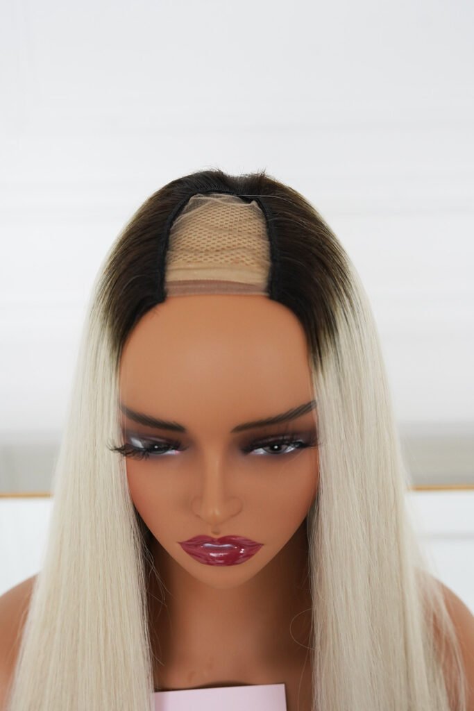 She comes with combs and an adjustable elastic band for the perfect fit. She can be put in a middle/side part by adjusting the position of the U part. She is designed to last for up to 3 years with proper care.