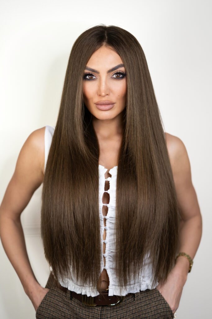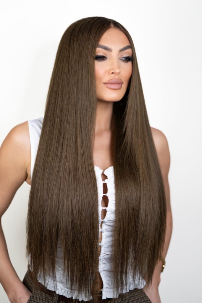 Elevate your style with Mocha Muse, a rich mocha chocolate brown wig from the Lillyhair x Zaralena Collection. Made from 100% virgin Cambodian hair, this luxurious wig is available in straight or wavy textures, allowing you to create the look you love.
