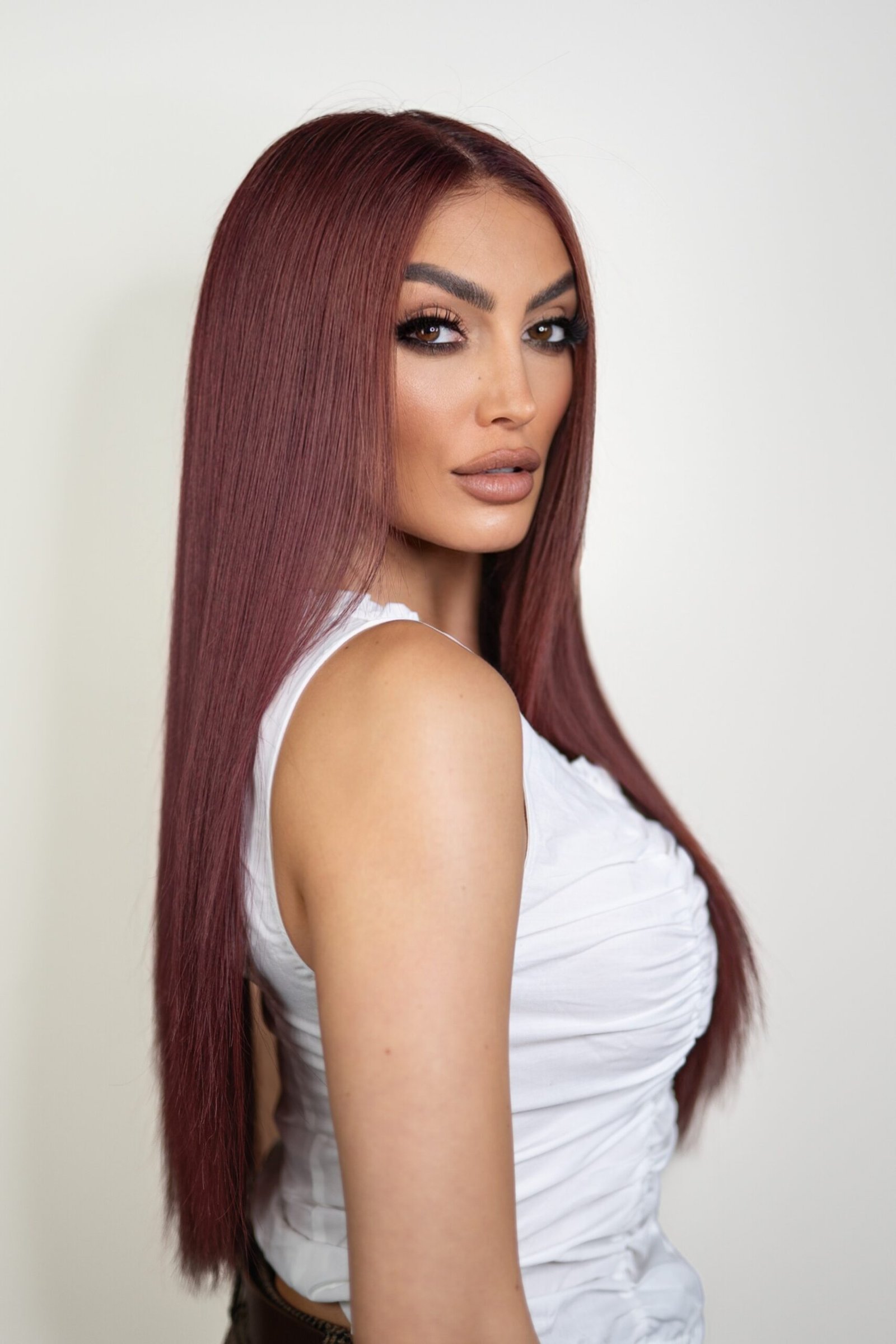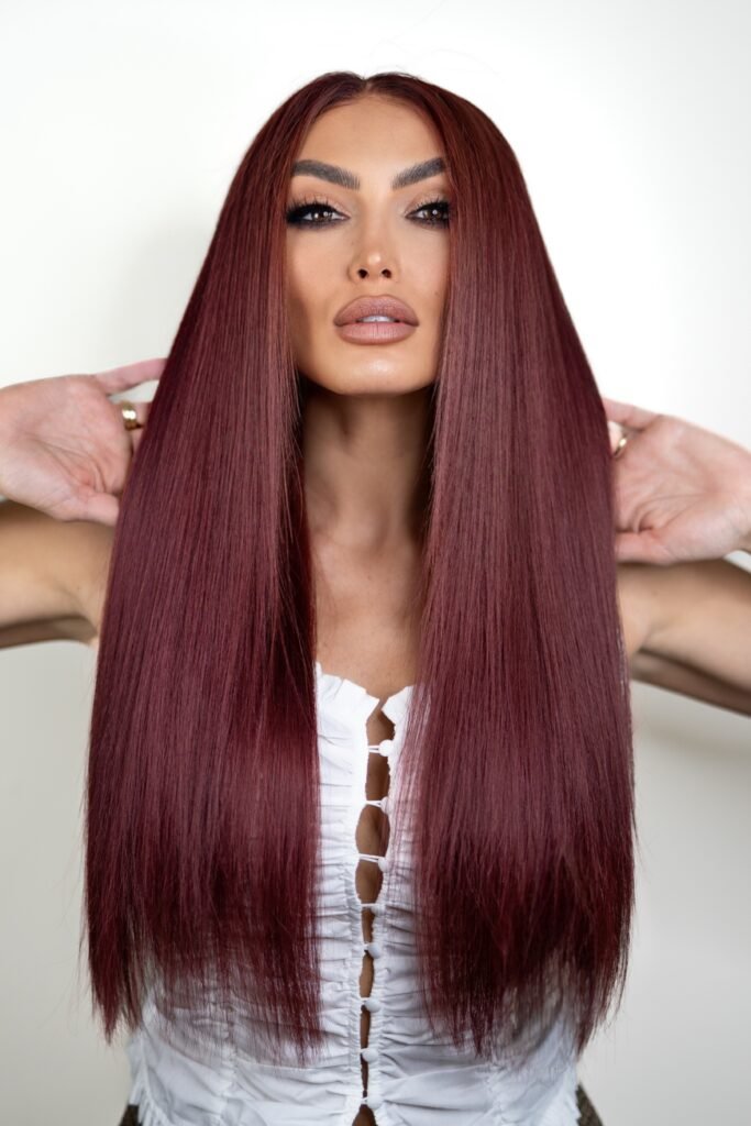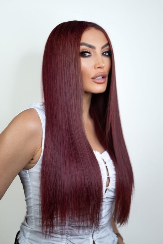 Turn heads with Red Velvet, a striking burgundy red wig from the Lillyhair x Zaralena Collection. Crafted from 100% virgin Cambodian hair, this luxurious wig is available in straight or wavy textures, allowing you to express your style with confidence and elegance.