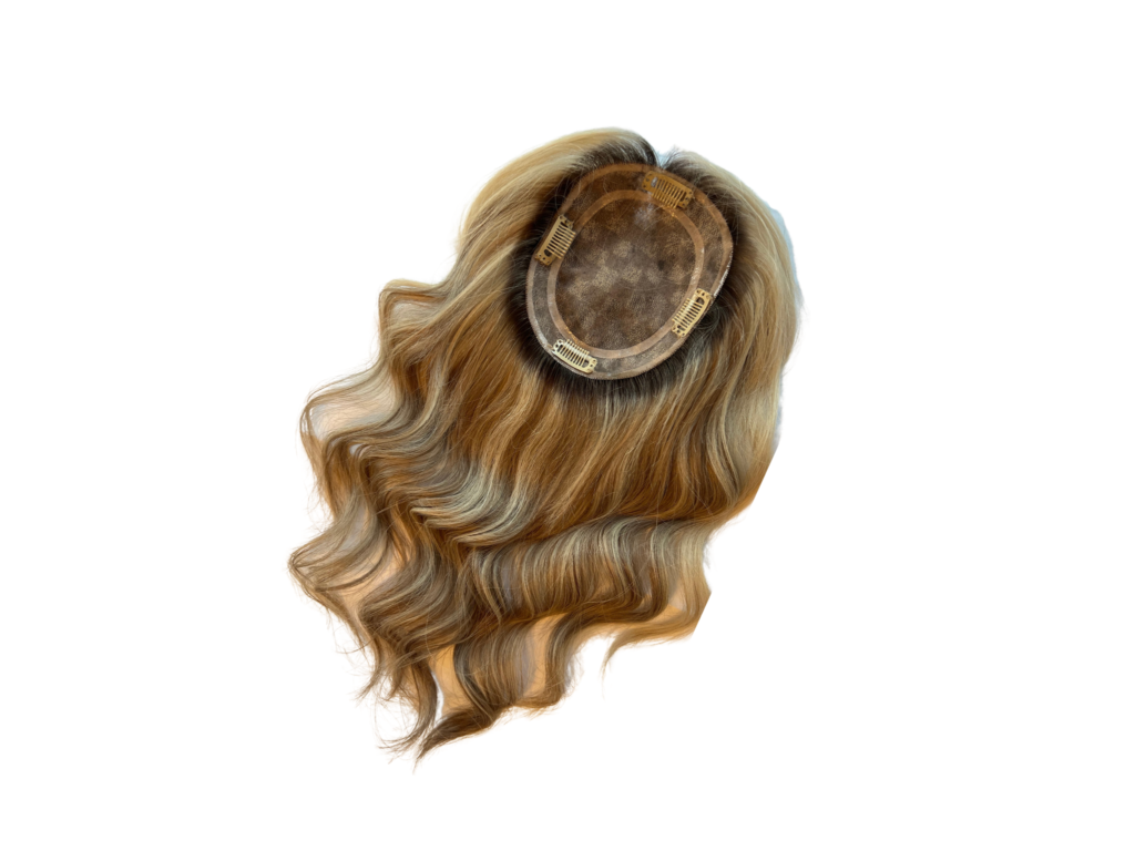 Our Toppers are made with 100% human hair sourced from Europe. All Toppers can be cut coloured and styled like normal hair and are easy to install with 4 secure clips. Toppers can be colour customised by adding a root shadow of your desired colour. The lightweight Topper adds fullness and volume to sparse or thinning hair. Our toppers can be styled in any parting allowing them to blend seamlessly into your natural hair.