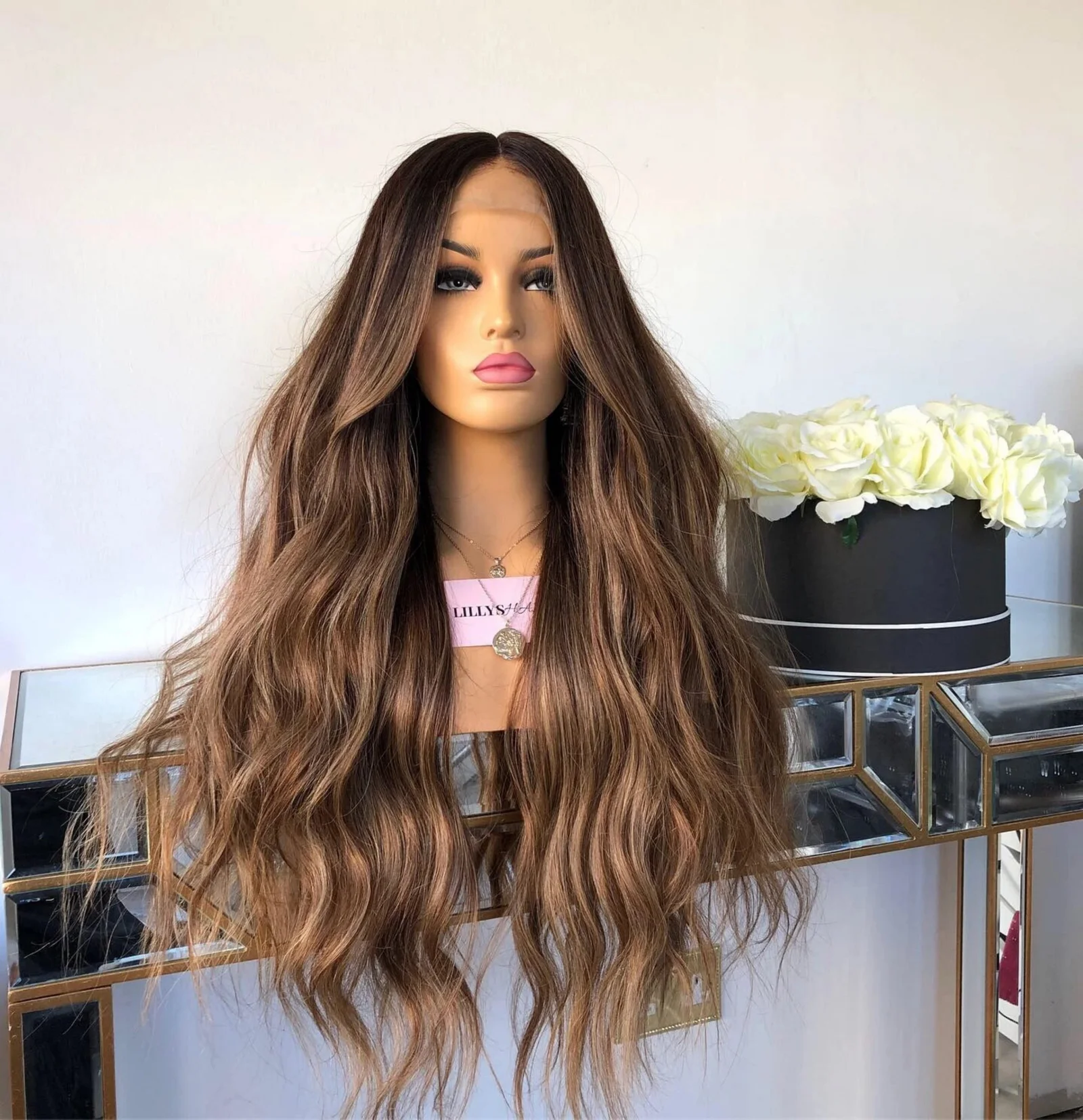 Colour: Darkest brown root melting into light chocolate brown and blonde mix.