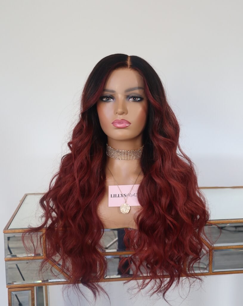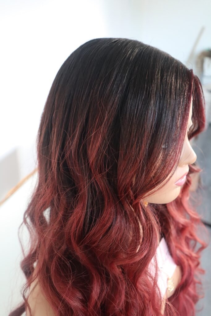 Rouge is made from Virgin Cuticle-aligned human hair which makes her perfect for everyday use. She has transparent lace, bleached knots, clips, combs, and an adjustable elastic band for the perfect glue-less fit. She can be put in a middle/side part and can be put up in a ponytail.