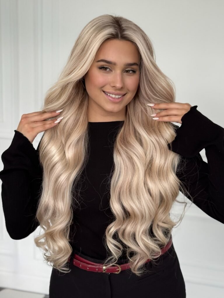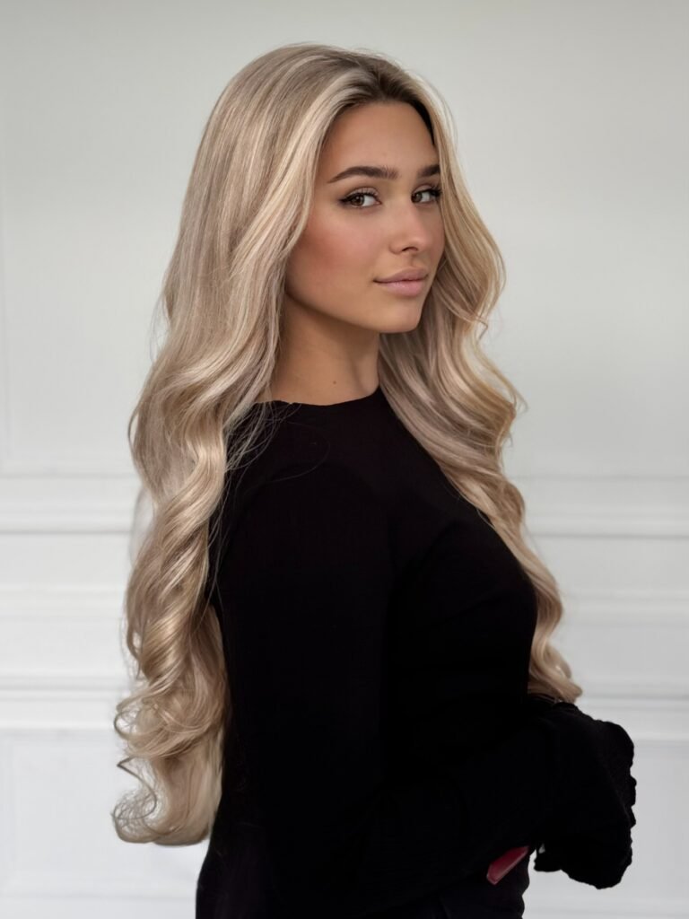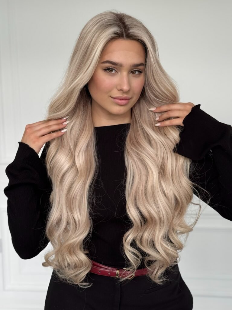 Colour: As the name implies, Sandy is a perfect blend of cool and warm tones. Platinum blonde mixed with golden blonde to create a perfect sun-kissed effect. The root is a level 6 natural ash blonde.