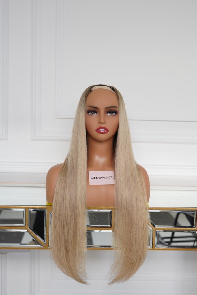 She comes with combs and an adjustable elastic band for the perfect fit. She can be put in a middle/side part by adjusting the position of the U part. She is designed to last for up to 3 years with proper care.