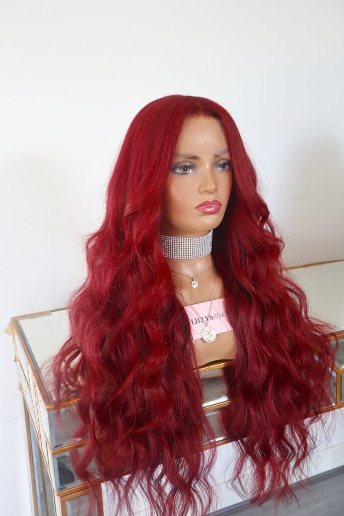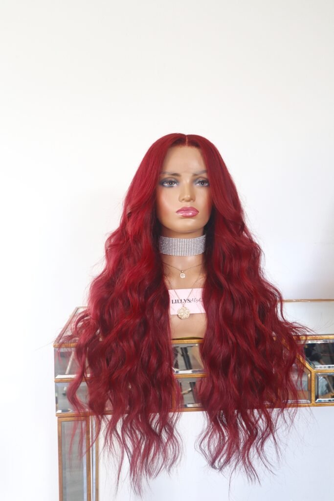 Command attention anywhere you go in our stunning vibrant red ‘Scarlet’ unit. She is made with the best quality real cuticle-aligned virgin human hair sourced directly from donors in Cambodia. She is perfect for everyday use.