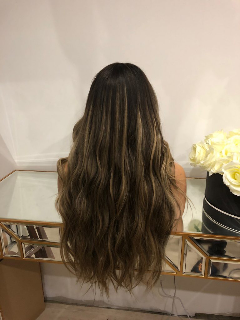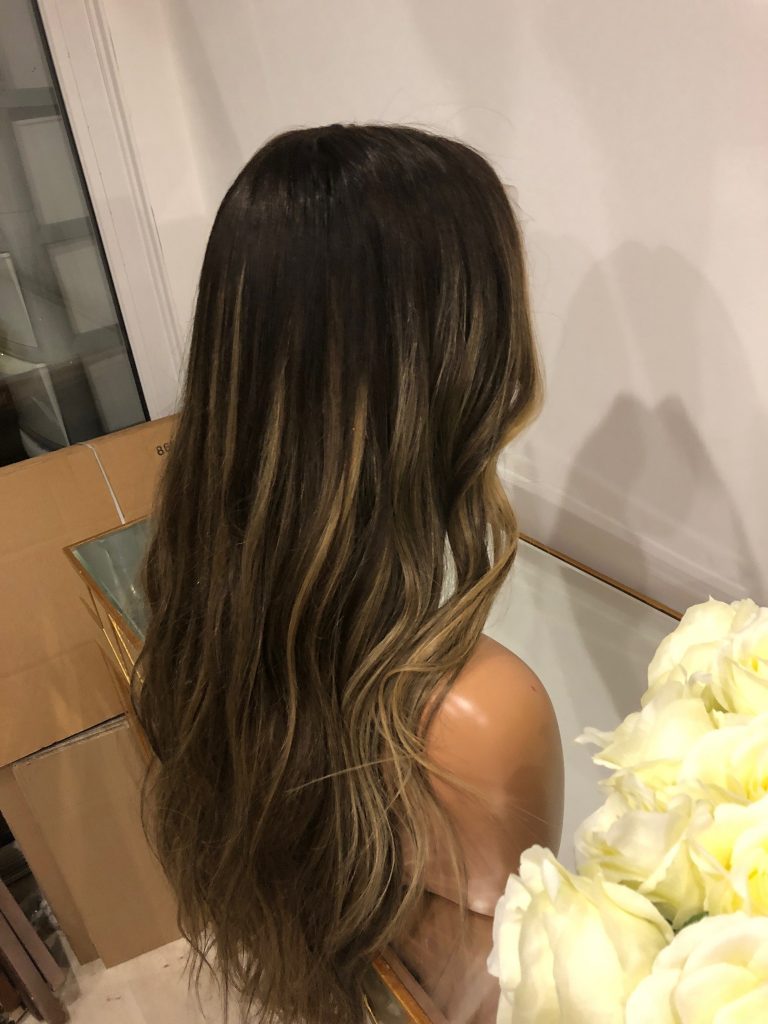 Colour: Balayage Darkest brown with natural blonde highlights.