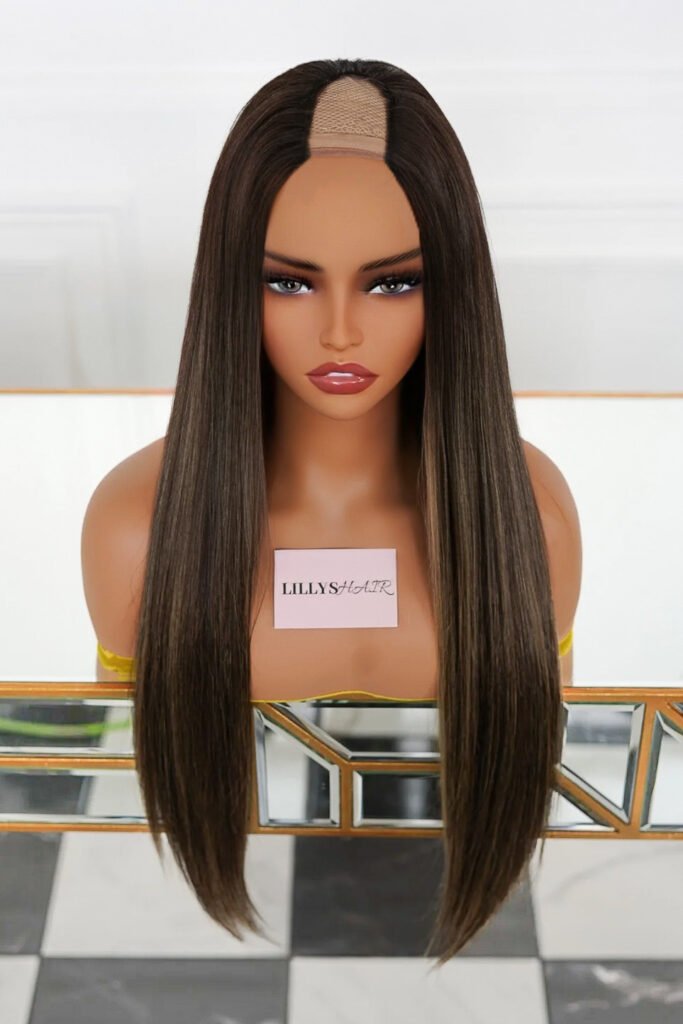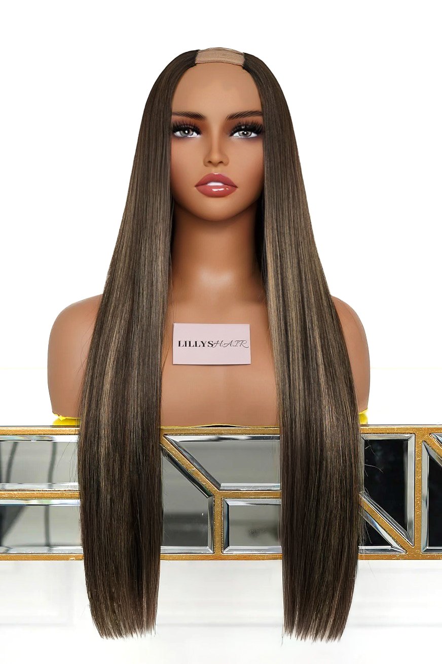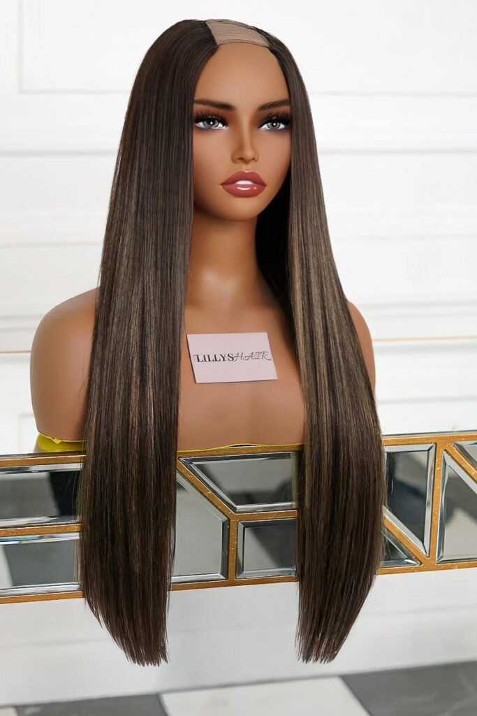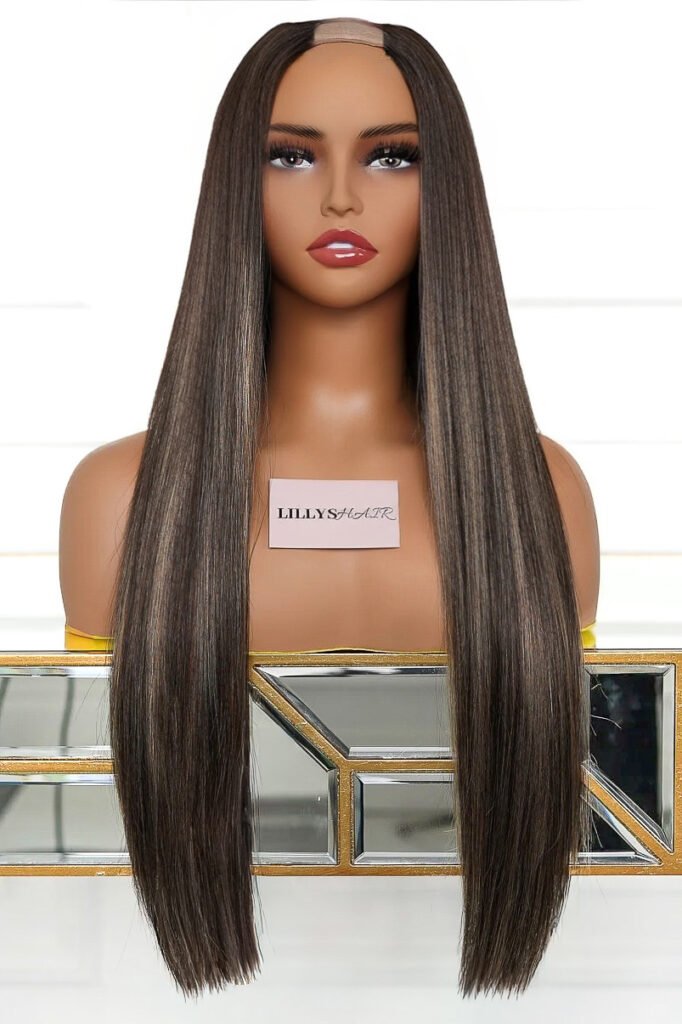 She comes with combs and an adjustable elastic band for the perfect fit. She can be put in a middle/side part by adjusting the position of the U part. She is designed to last for up to 3 years with proper care.