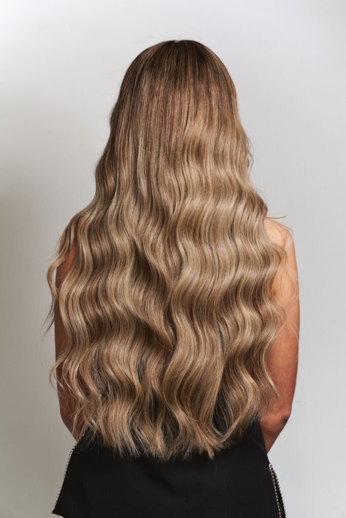 Colour: Balayage dark ash blonde root melting into mixed dark ash blonde and platinum blonde.