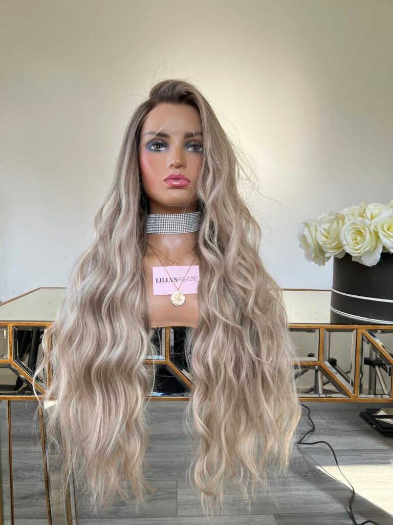 Colour: Dark Ash-blonde level 6 root melting into light medium ash blonde and natural blonde ends.
